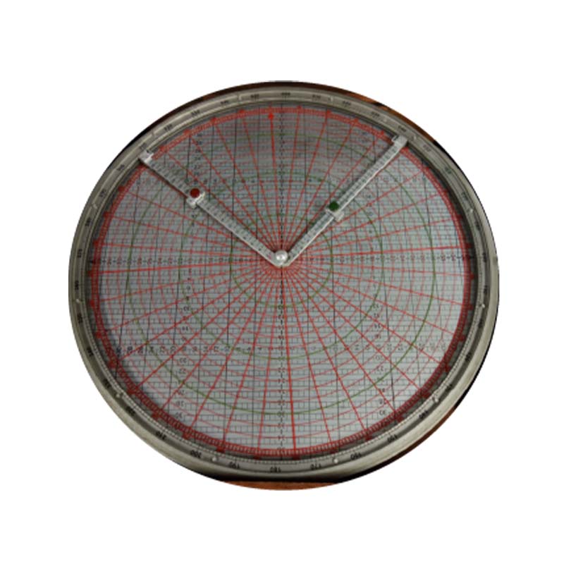 f) A circular distance/time scale is engraved on the back of the frame. The outer scale is marked in seconds from 15 to 60 and minutes from 1 to 60. The inner rotatable scale is marked in miles from 0.1 to 40. By setting the ship’s speed against the 60-minute mark, the distance covered in a specified time may be discovered. Conversely the speed or time may be found if the other two factors are known.